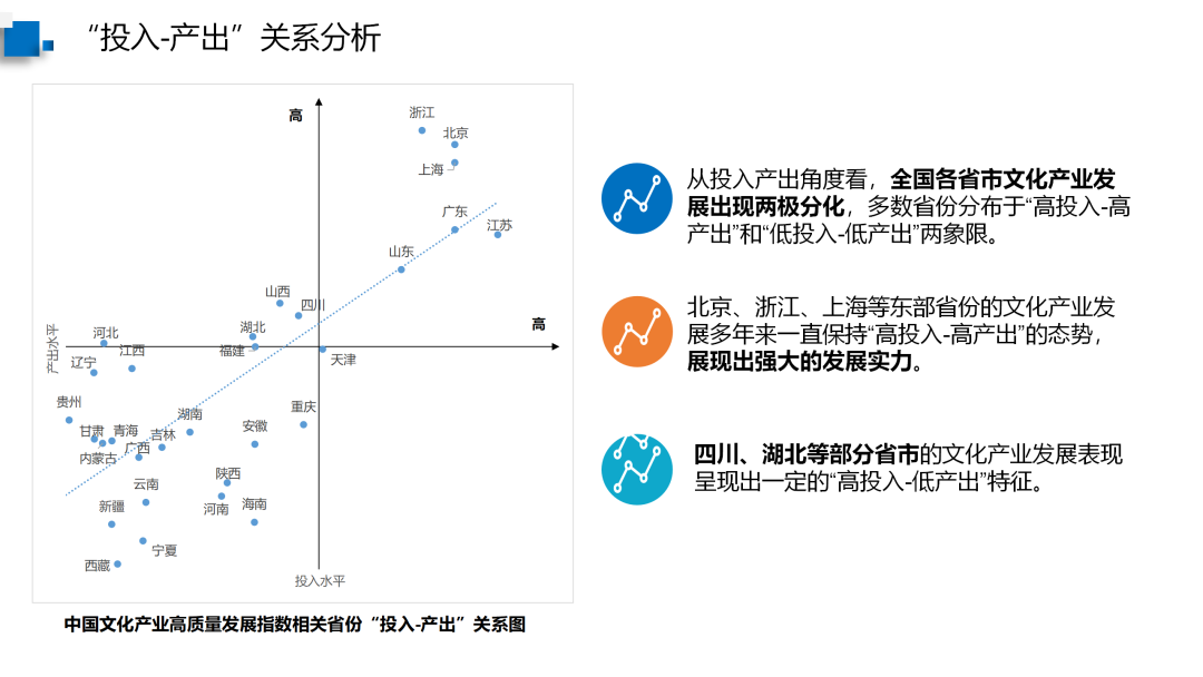 北京、浙江、上海等东部省份的文化产业发展多年来一直保持“高投入-高产出”的态势,展现出强大的发展实力。